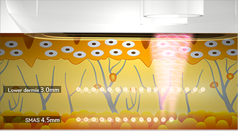 고강도 초음파 에너지를 진피층, SMAS층에